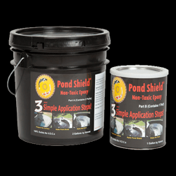 Pond Shield non-toxic epoxy coating 3 gallon kit – BLACK.  Safe for fish and plants.  Easy application.  Very low maintenance after installation.  Made from space age polymers that are designed to provide long life and excellent wear resistance.