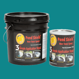 Pond Shield non-toxic epoxy coating 3 gallon kit – DELTA BLUE. Safe for fish and plants. Easy application. Very low maintenance after installation. Made from space age polymers that are designed to provide long life and excellent wear resistance. Has an excellent bond strength to almost any surface, very impact resistant and is designed to flex when needed making this coating the best option for waterproofing your pond, fountain, or other type of water feature. Is very chemical resistant and can be used in chlorinated environments as well. The perfect waterproof coating for other than water feature projects as well.